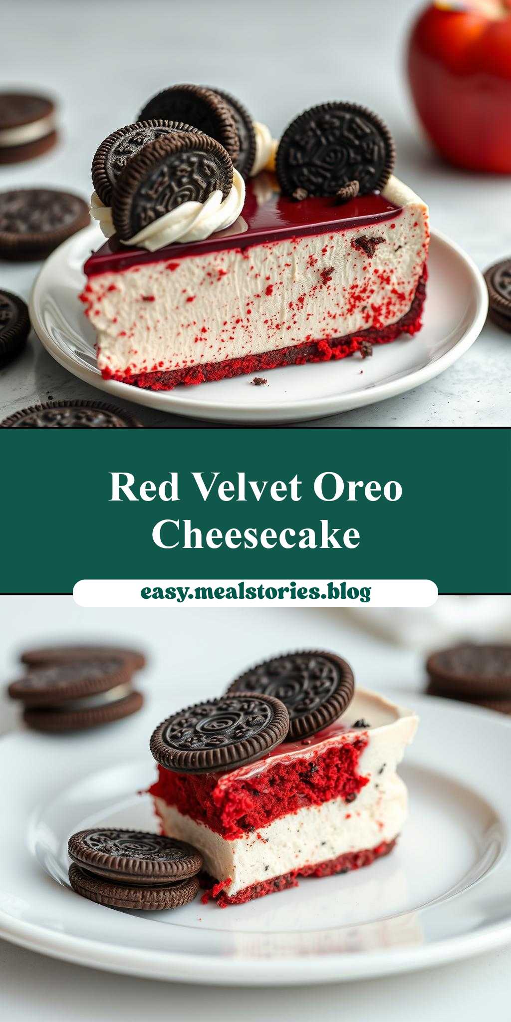What’s the ultimate dessert mashup – this red velvet oreo cheesecake with cookies on top is a game changer, featuring a homemade cream cheese filling and baked to perfection, save …