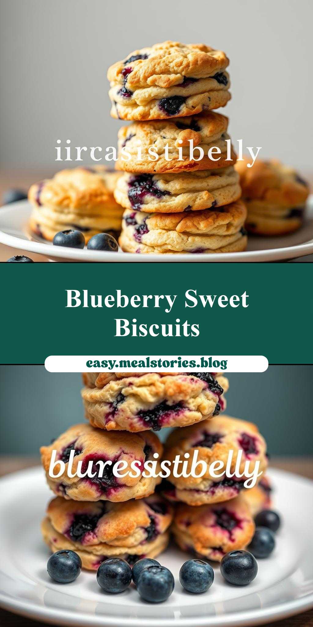 blueberry biscuits are stacked on top of each other with the words irresistiblely blueberry biscuits