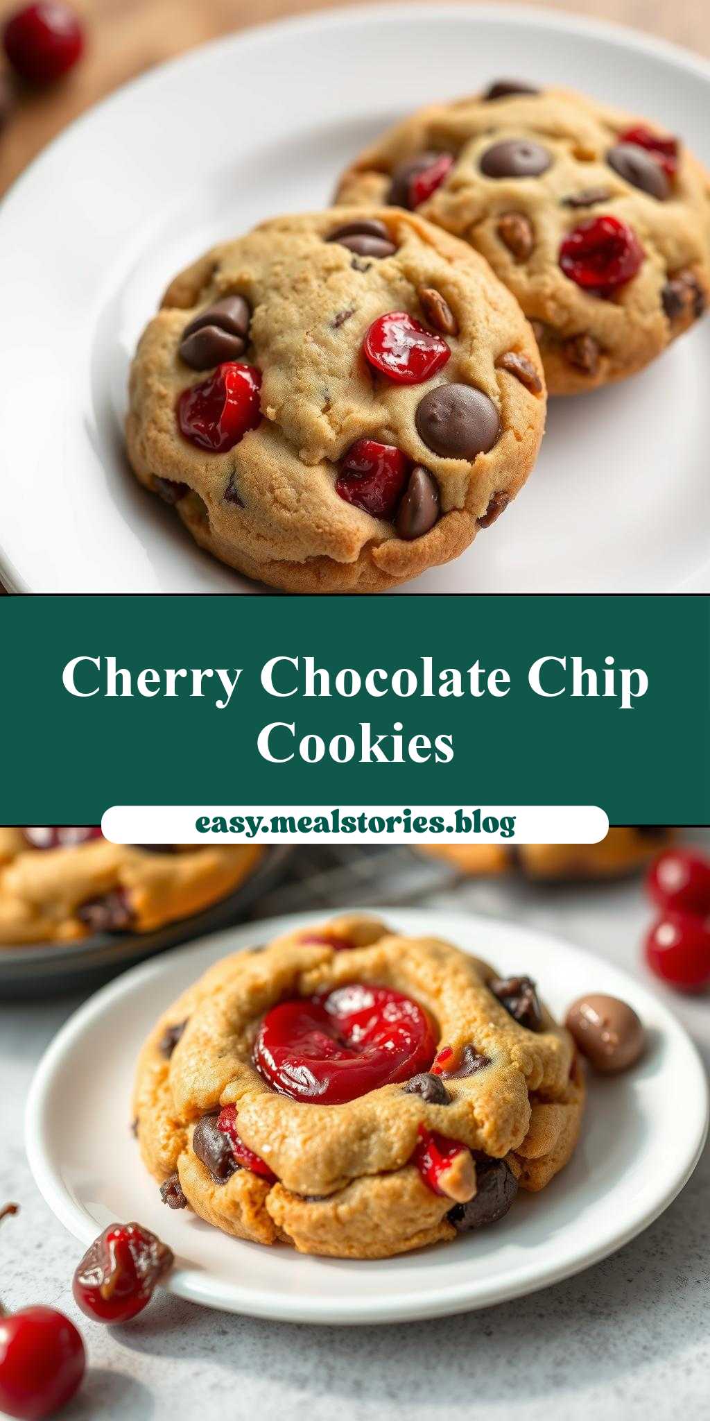 A sweet and chewy cookie recipe combining maraschino cherries and dark chocolate chips, perfect for any occasion.