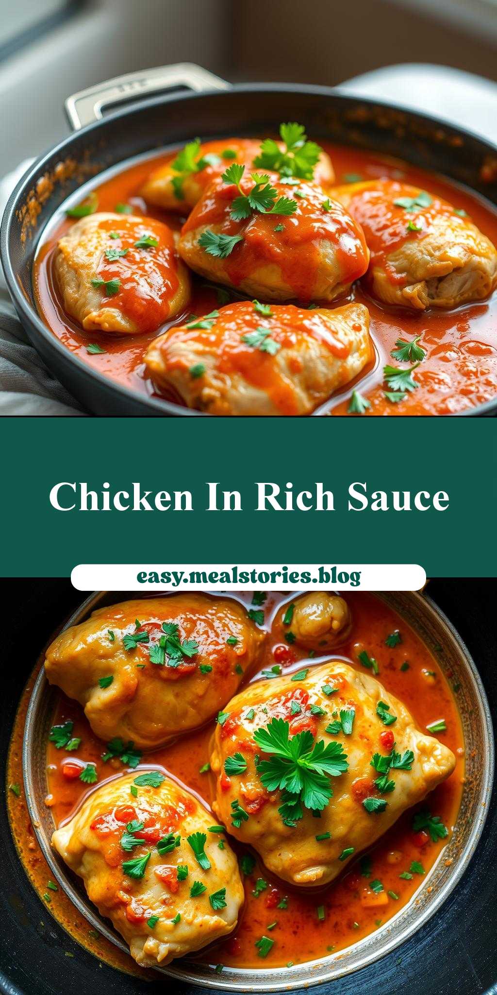 A simple yet impressive dish featuring chicken in a rich sauce, garnished with fresh parsley.