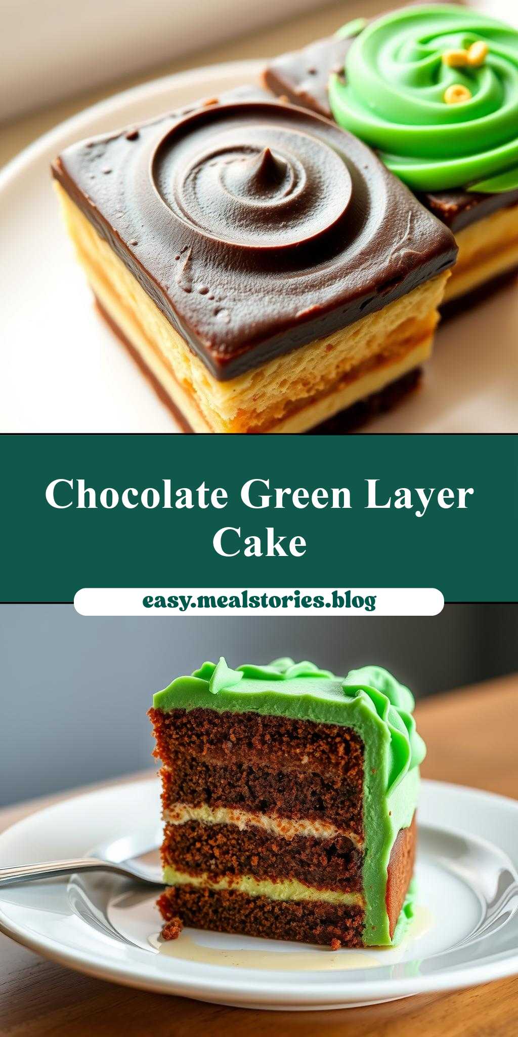 A rich chocolate cake layered with vibrant green frosting, perfect for special occasions or as a treat any time of the year.
