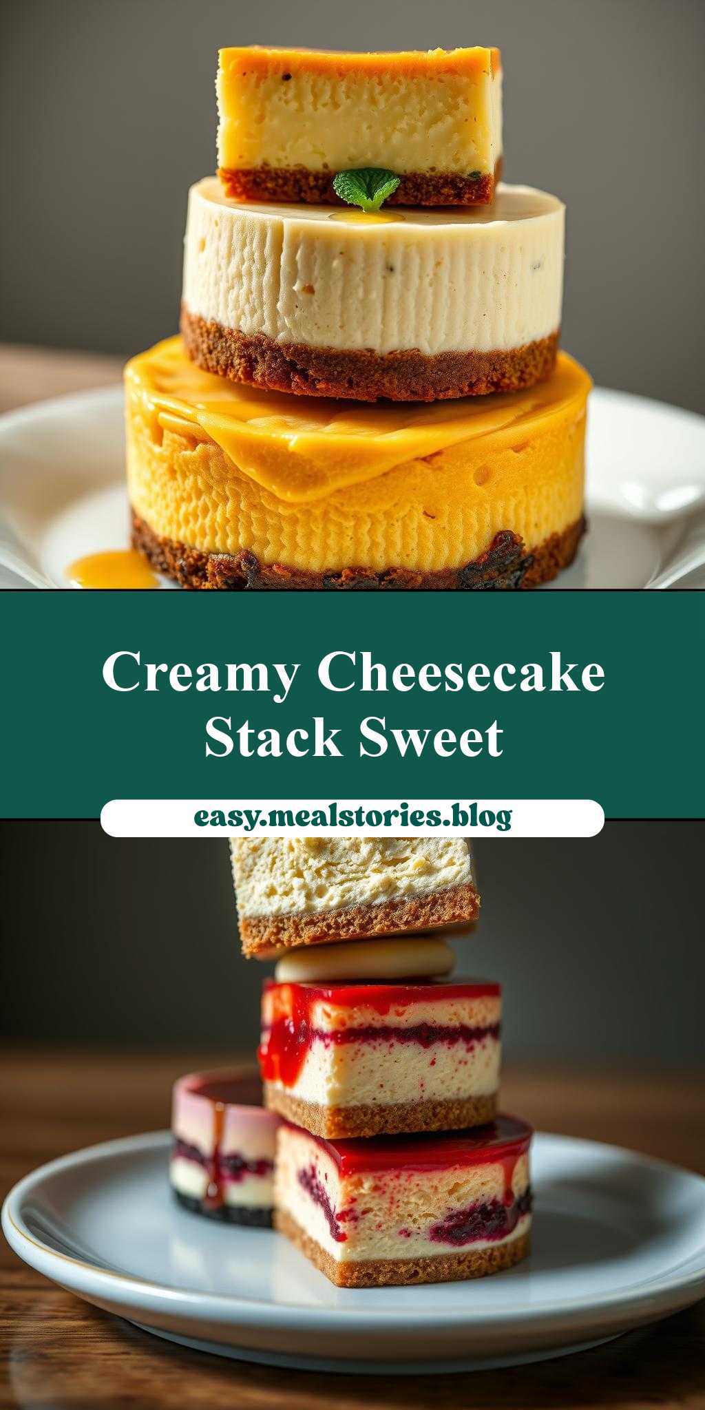 What’s the ultimate dessert stack look like to you? Imagine layers of creamy cheesecakes made with fresh berries and a graham cracker crust, perfect for a homemade weeknight treat. Save this idea for your next family favorite dessert night, Try it soon and indulge in the rich flavors.