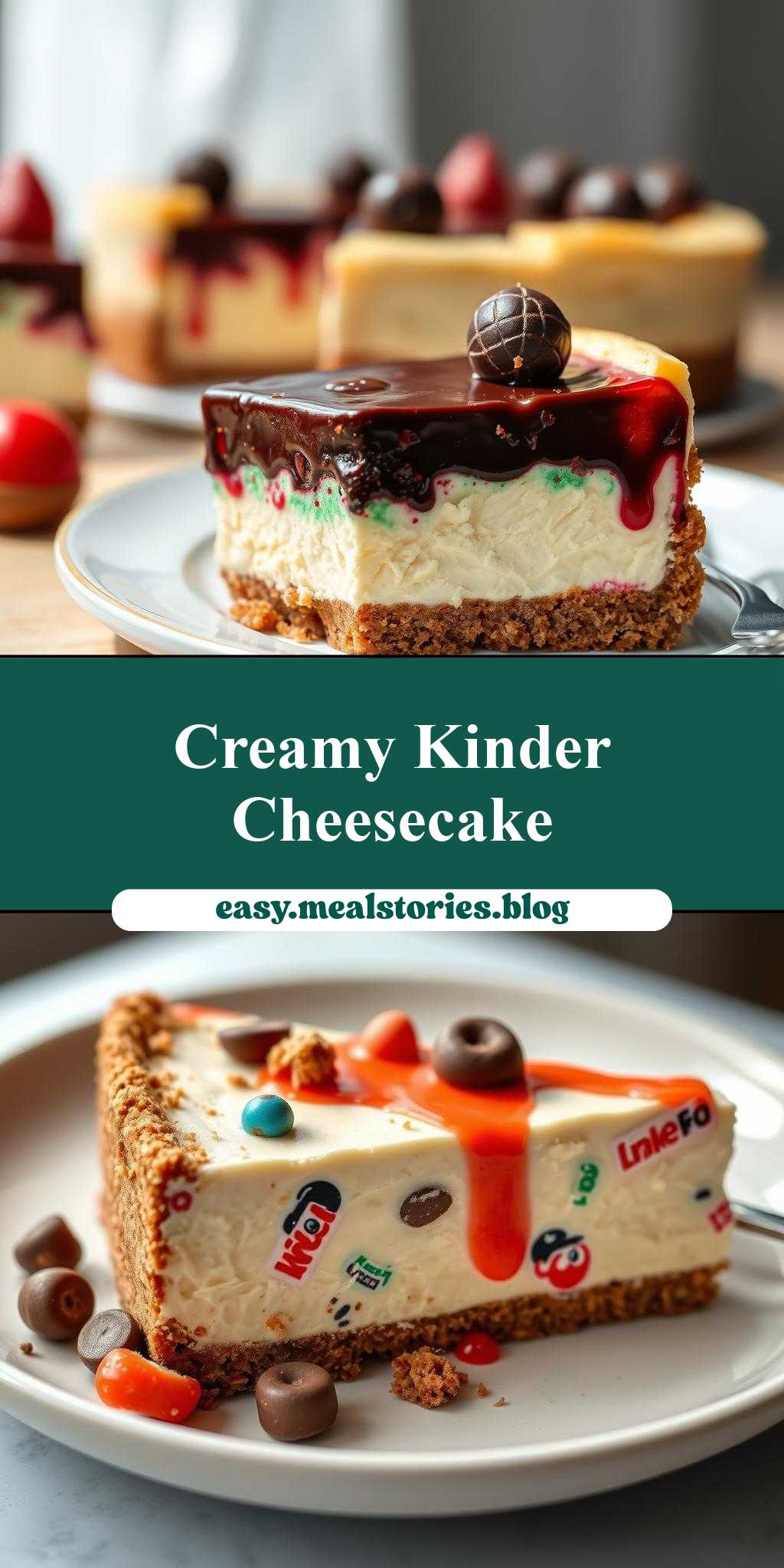 A no-bake cheesecake recipe combining the richness of cheesecake with the playful charm of Kinder chocolate, requiring minimal effort and no baking.