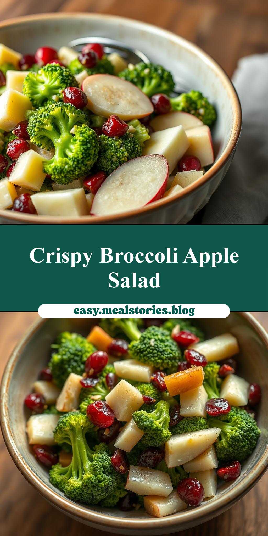 The crunch in this salad comes from the fresh broccoli, the crisp apple, and the chewy cranberries. To enhance the crunch factor, you can add some chopped nuts like almonds or walnuts. For an extra crispy texture, consider adding some crispy bacon bits or toasted pumpkin seeds.