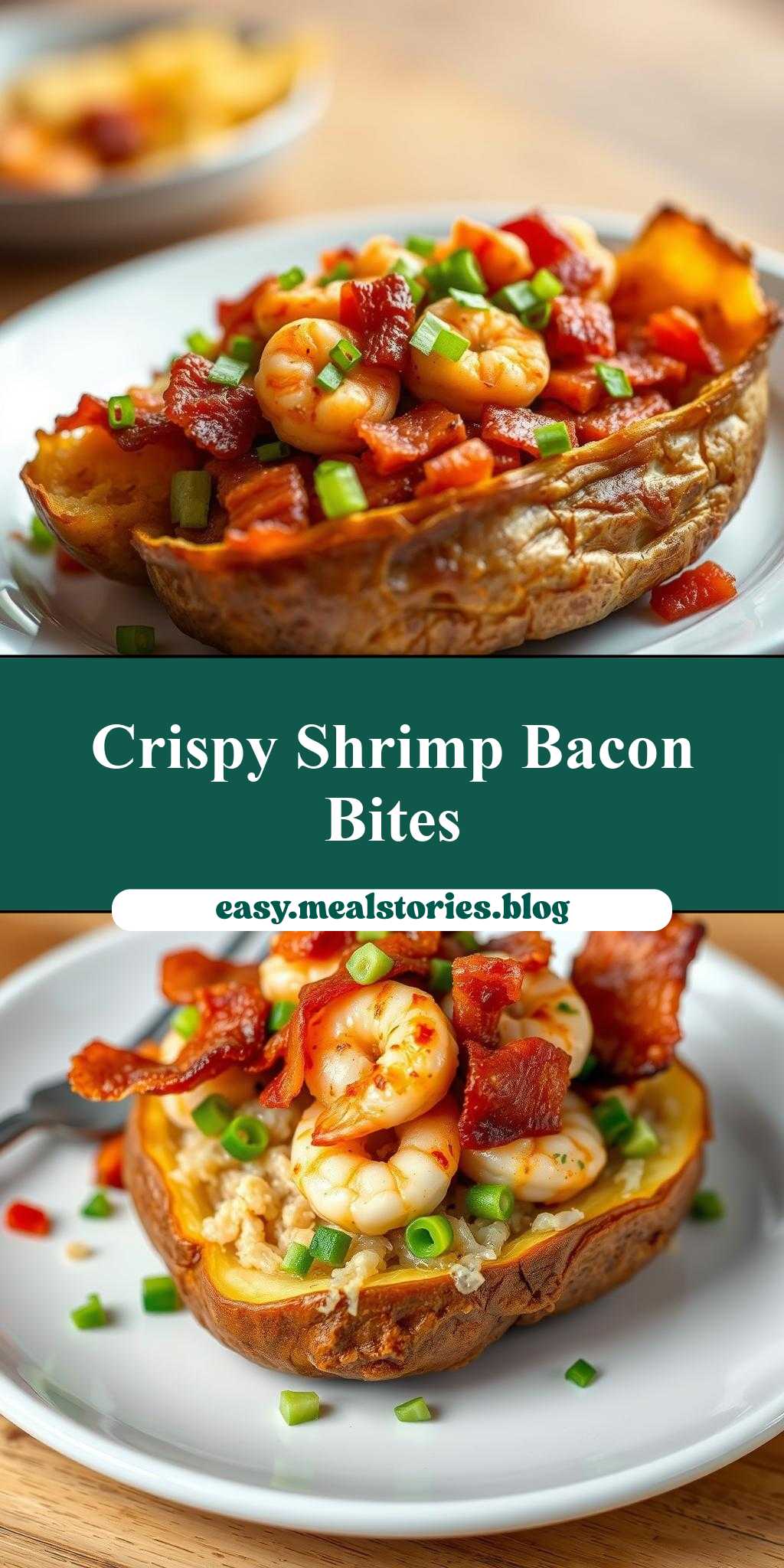 A creative twist on traditional loaded potatoes, combining succulent shrimp, crispy bacon, and the comforting warmth of a baked potato.