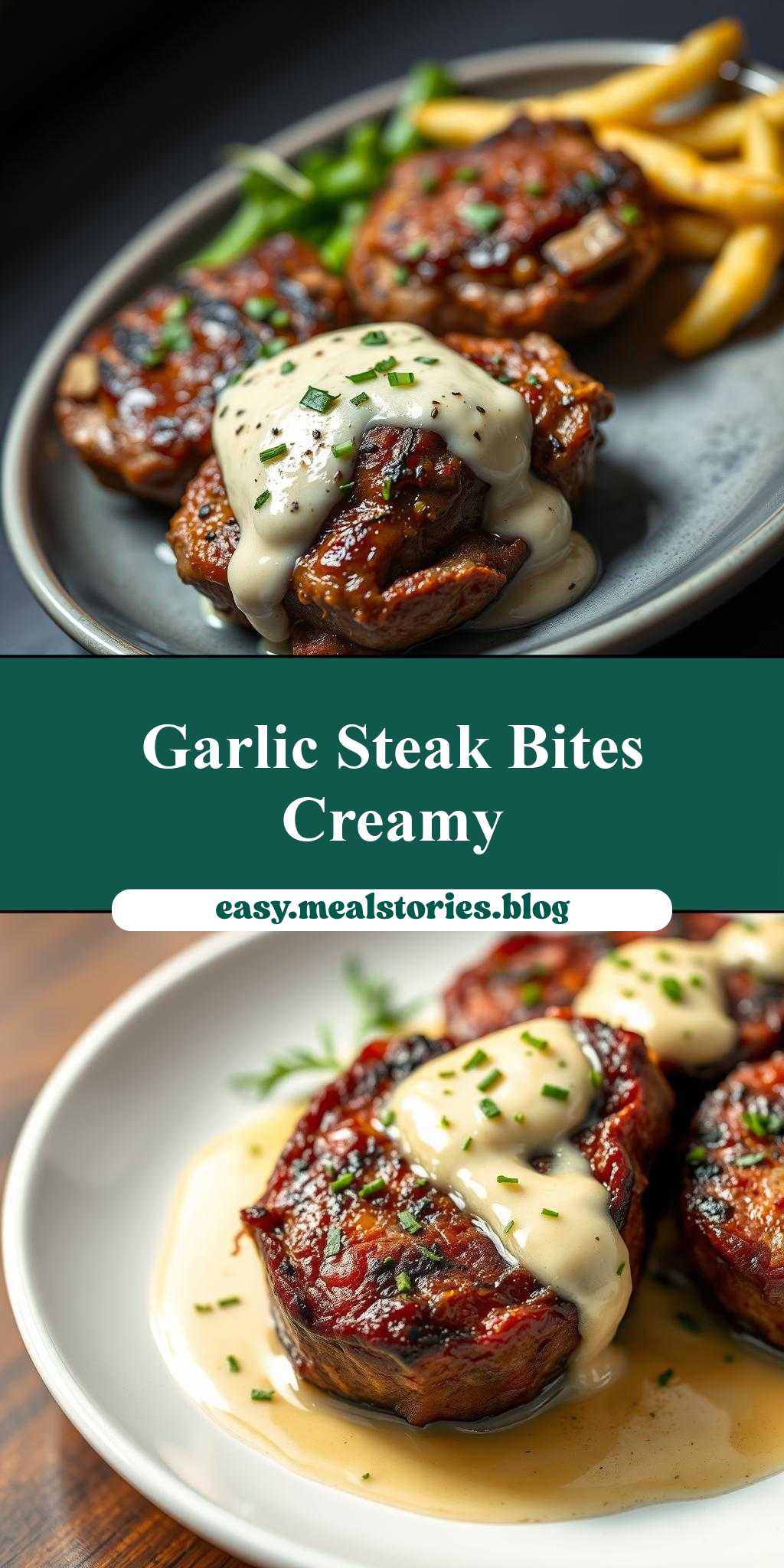 Tender steak bites smothered in a rich garlic butter and served with a creamy parmesan sauce, perfect for a quick dinner or special occasion.