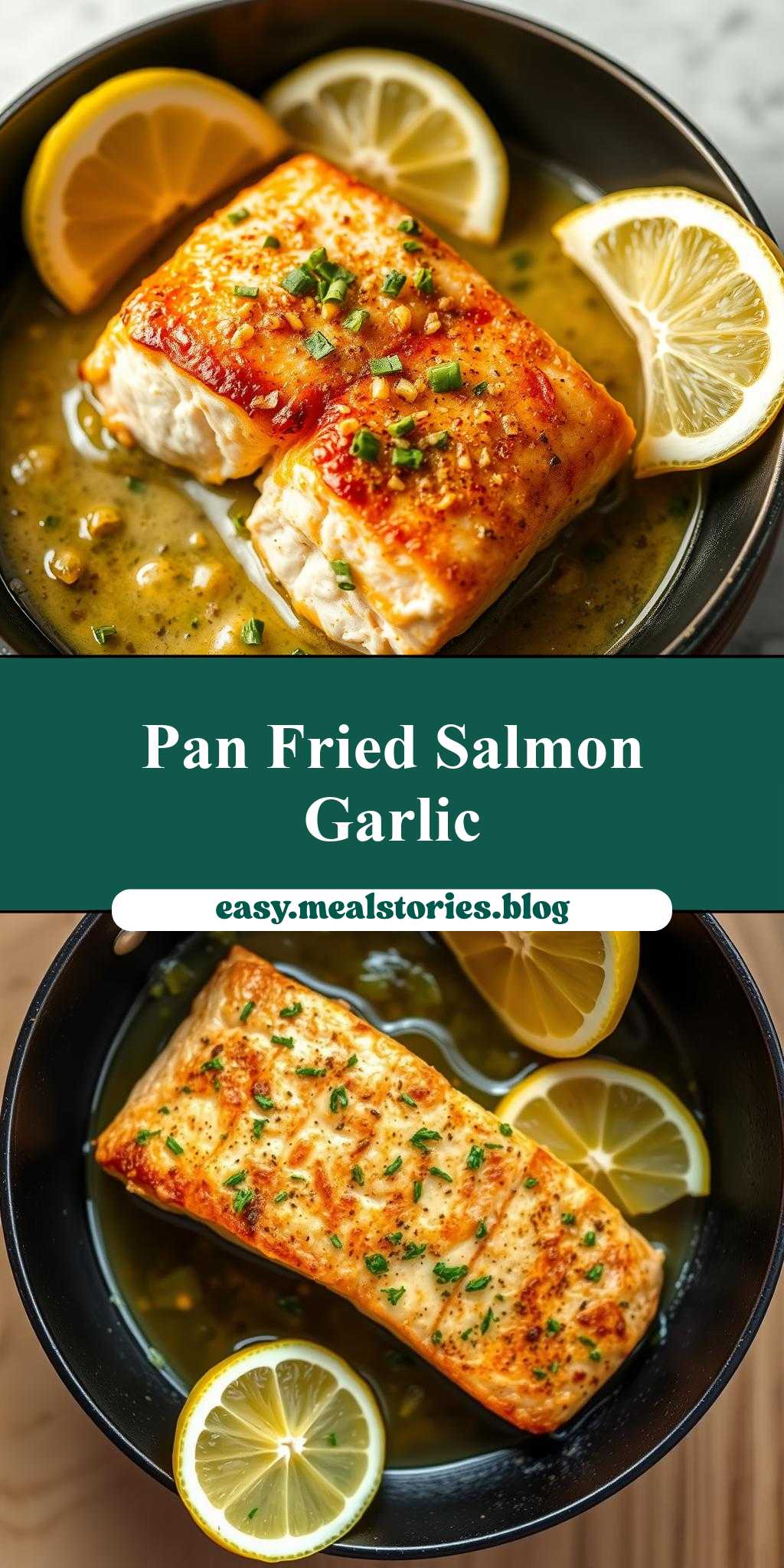 What makes a perfect weeknight dinner? A quick and easy recipe like this pan fried salmon with garlic butter sauce, cooked to perfection in a skillet and served with a squeeze of fresh lemon. Try it soon and enjoy a homemade family favorite, save this idea for your next meal inspiration.