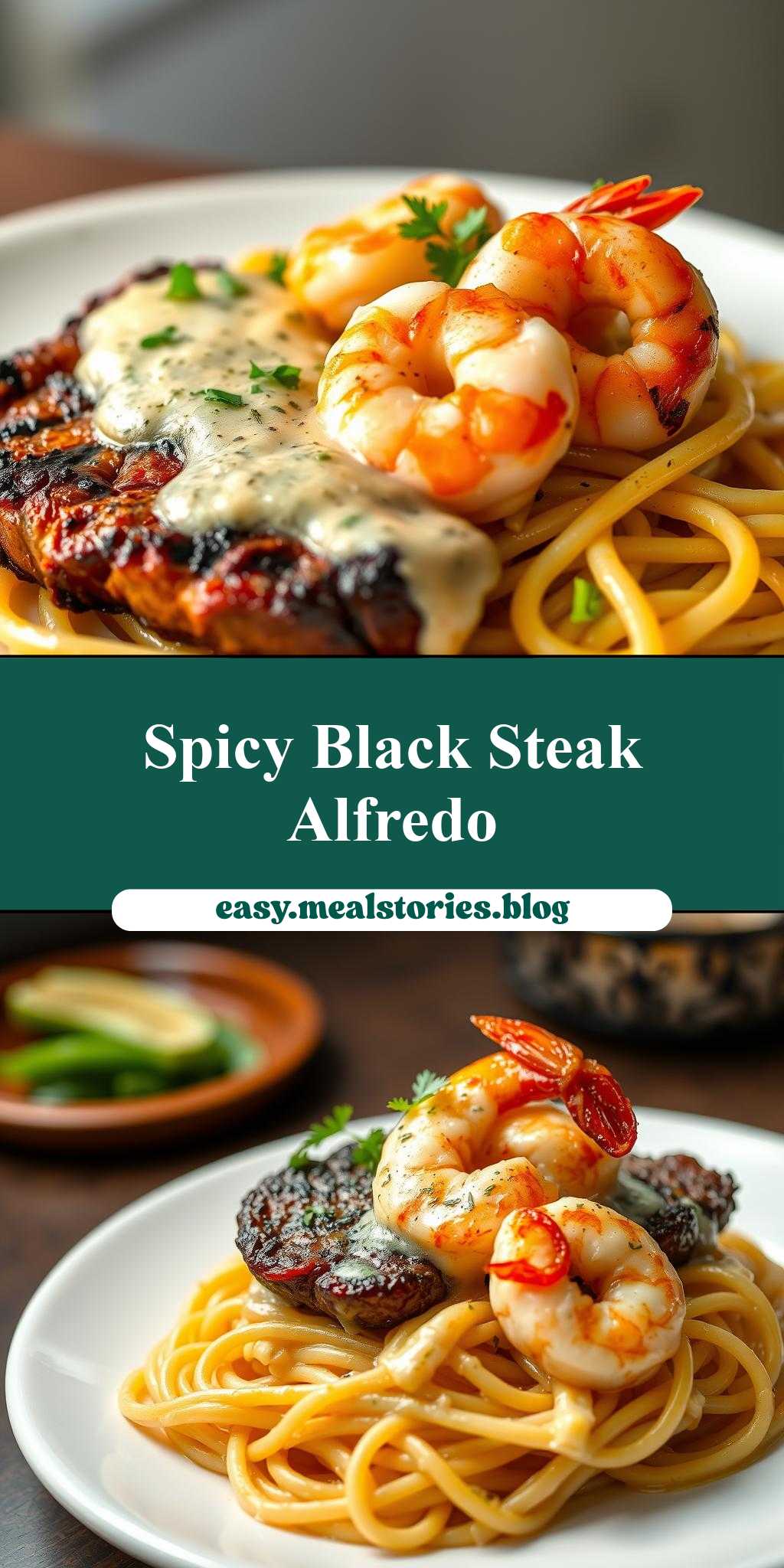 A spicy and flavorful dish that combines blackened steak, succulent shrimp, and creamy alfredo sauce, perfect for a quick dinner party or a cozy night in.
