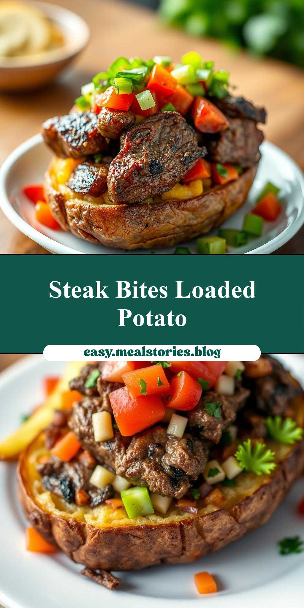 A hearty and flavorful dish combining tender steak bites with loaded baked potatoes, perfect for any meal.
