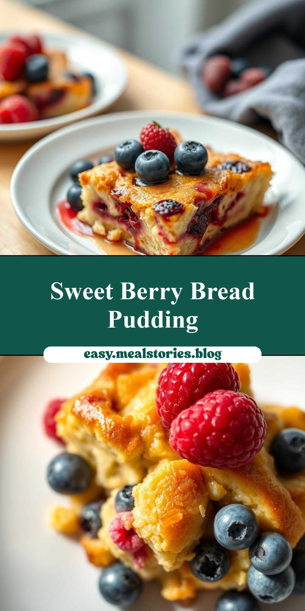 A delicious and easy-to-make bread pudding recipe featuring blueberries and raspberries on top.